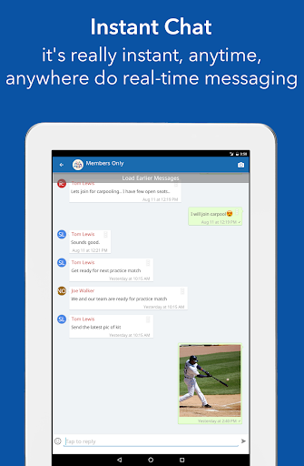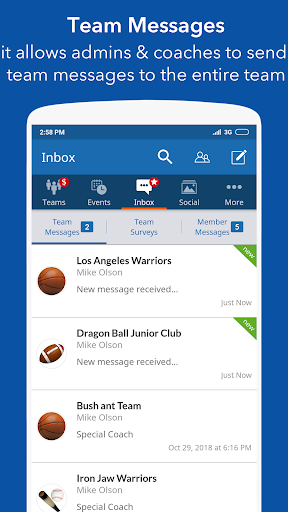 Instateam هو أكثر من جدولة فريق رياضي أو مدير أنشطة ؛يسمح بالمراسلة في الوقت الفعلي بين أعضاء الفريق والمدربين والآباء وغيرهم مع الحفاظ على الخصوصية.لا يمكن للمدربين إرسال رسائل فورية فقط للحصول على تحديثات مهمة مثل الإلغاء أو التغييرات في المكان ، ولكن يمكنهم أيضًا مراقبة الحالة التي شاهدها أعضاء الفريق أو الرد على رسائلهم.