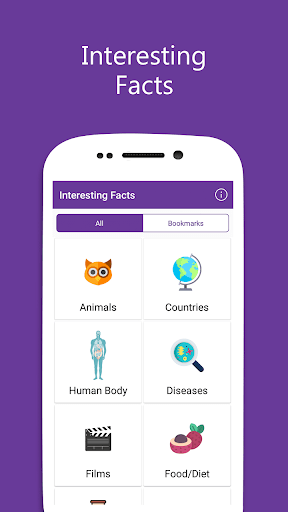 All interesting facts in this fantastic app are divided in multiple categories, and the categories into subcategories. With it, you can read and easily learn cool facts about Animals/Birds, Countries, Human Body, Films, Ceremonies/Customs, Diet/Nutrition, Diseases/Disorders, Drugs/Addiction, Entertainment, Fashion/Attire, Food/Drink/Eat, Historical Structures, Indian States, Nature, Science, Technology and many more.......................................