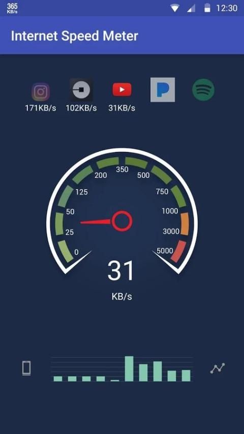 شبكة اختبار سرعة: تحقق سرعة الشبكة في الوقت الحقيقي في شريط الحالة.