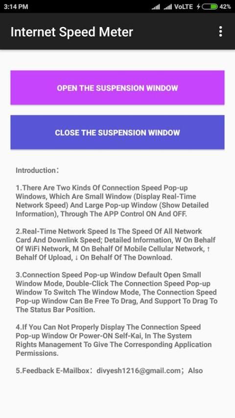 -هناك نوعان من سرعة اتصال الإطارات المنبثقة، التي تشكل نافذة صغيرة (عرض في الوقت الحقيقي سرعة الشبكة) وكبيرة نافذة منبثقة (مزيد من المعلومات المفصلة)، من خلال التطبيق للتحكم على نحو متقطع.