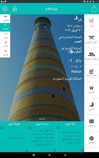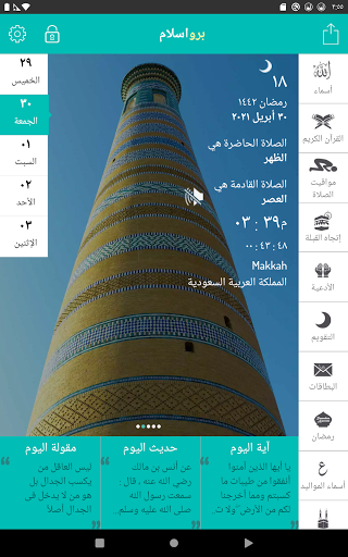 آية اليوم ، وحديث اليوم ، و إقتباسات إسلامية يومية.