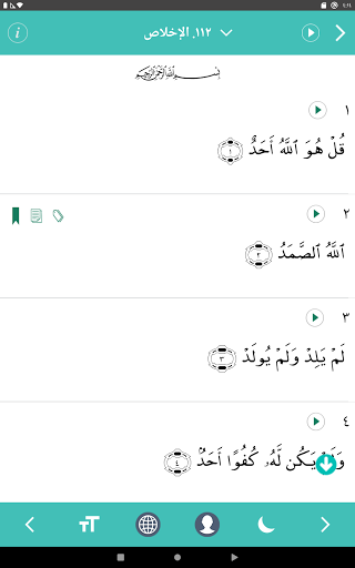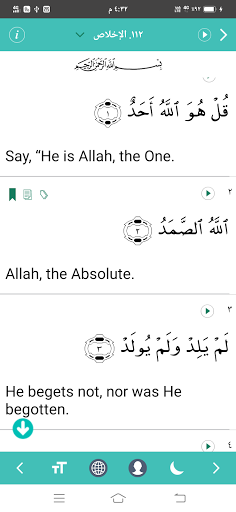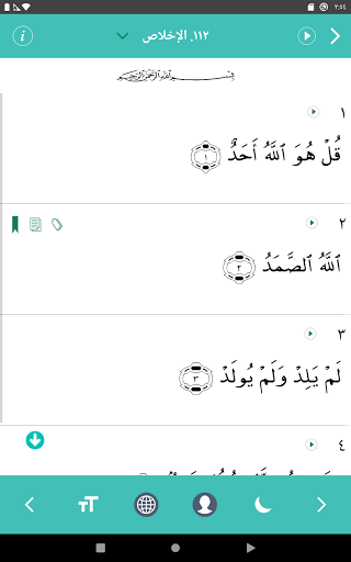 تتوافر تلاوات مجانية للقرآن الكريم باللغة العربية و قراءة الترجمات الإنجليزية والأردية.