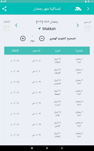 التقويم الهجري: يظهر لك التاريخ الهجري و المناسبات الإسلامية بحسب التقويم الهجري و أطوار القمر المختلفة.