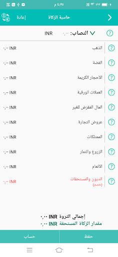 حساب مقدار الزكاة: حساب الزكاة المستحقة عند إدخال مقدار النصاب.