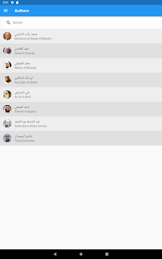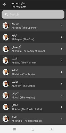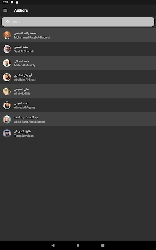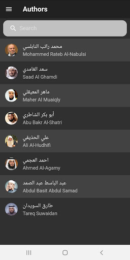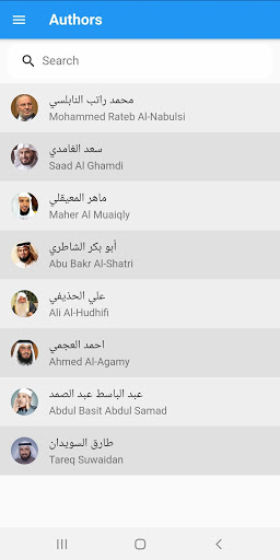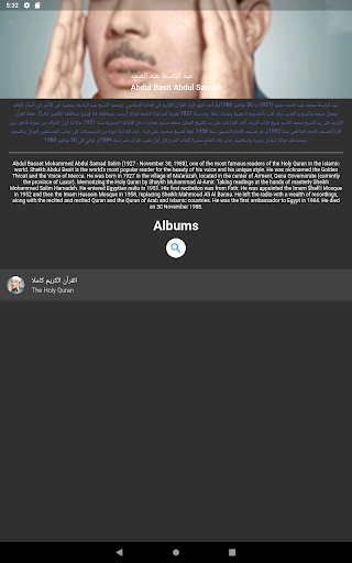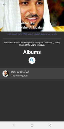 من خلال التطبيق يمكنكم البحث عن المقرئ. ألابيم المقرئ. وحتى عن الملف الصوتي لكل ألبوم.