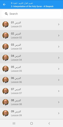 يحتوي التطبيق على العديد من الدروس الإسلامية وقراءات القرآن الكريم من عدة مقرئين وشيوخ وعلماء.