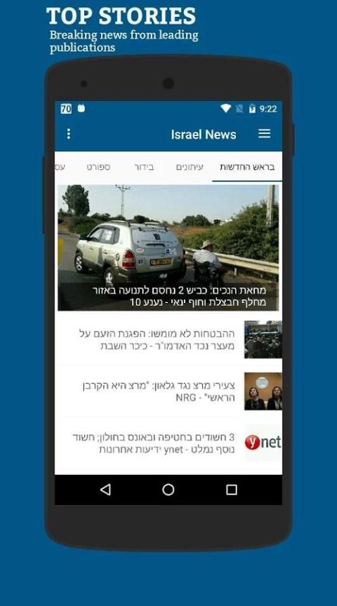 - قدمت القطعة للأخبار إسرائيل مع قائمة من المقالات الإخبارية على القطعة شاشة الجوال لسهولة التصفح على الشاشة القطعة