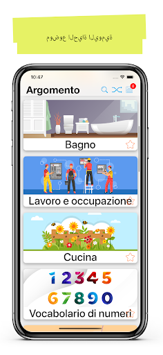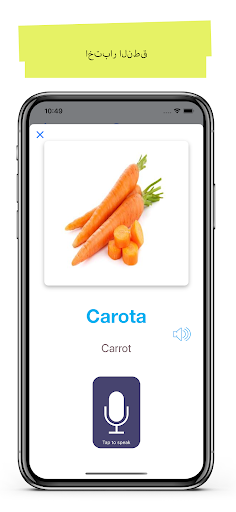 يحتوي قاموس التطبيقات على نطق صوت بشري لكل عبارة شائعة لتحسين مهارة التحدث لديك.
