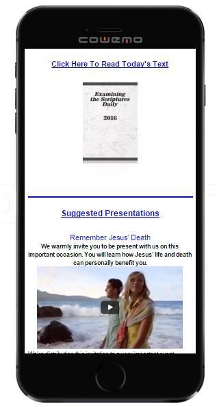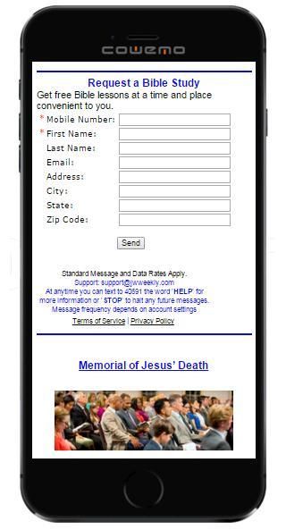 أيضا، مساعدة تلك المهتمة في الوزارة مع أسبوعية الكتاب المقدس نظام الرسائل النصية مجانا من شأنها أن تضع الأدب الإلكترونية ووسائل الإعلام مع الأسر، وتشجيعهم على طلب الدراسة الحرة منزل الكتاب المقدس.