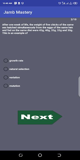 This App provides, for prospective Jamb Candidates, the opportunity to test their potentials on some subjects which they are about to sit for in their upcoming Jamb CBT exam. After each session, of this test, student could be able to know his/her performance as well as the corrections to the mistakes he/she made while taking the Test. This is to make sure that students do learn from some the mistakes they made as well as took some corrective measures.