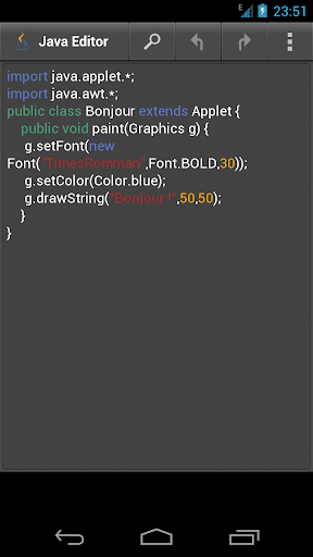 Java Editor هو محرر Java بسيط للغاية، يمكنه تلوين عقد بناء الجملة: العقد والسمات والخصائص والأحداث ودعم الإكمال والبحث واستبداله.يفتح الملفات الافتراضية مع الامتدادات: JAV، Java.