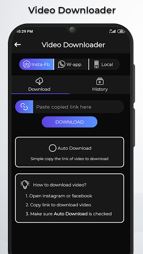 التطبيق ل Instagram و Facebook. في هذا التطبيق، انقر بنقرة واحدة فقط لتنزيل الفيديو وحفظها في معرض الهاتف الخاص بك.