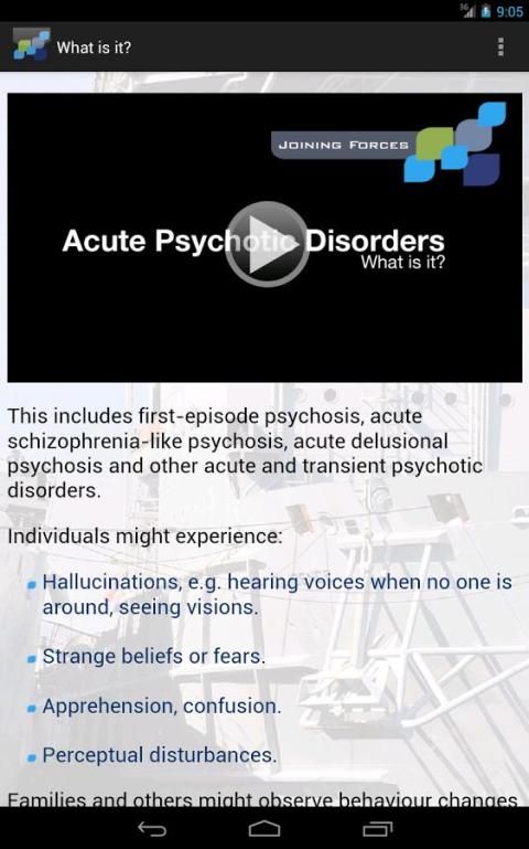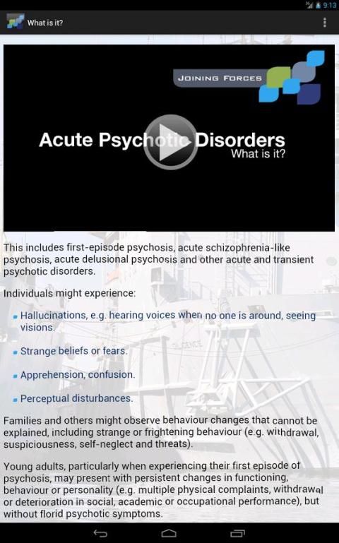 هذا التطبيق يقدم المعلومات والدعم المحيطة مشاكل الصحة العقلية.