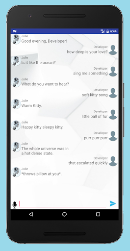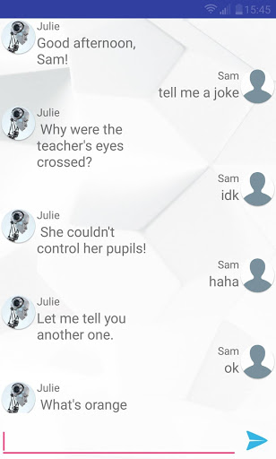 Julie هي روبوت دردشة مجاني!جولي يحظر لغة سيئة وأمان تماما.