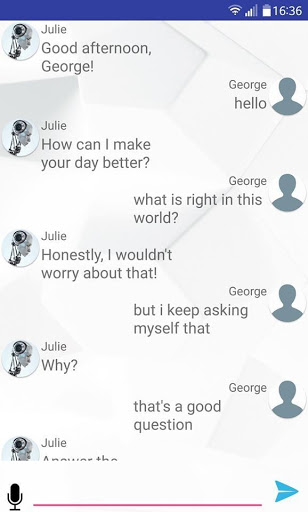 جولي هو روبوت دردشة منظمة العفو الدولية التي لديها الميزات الحالية: