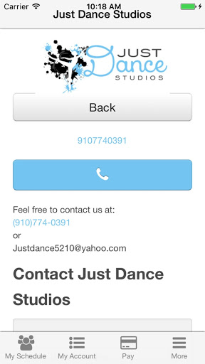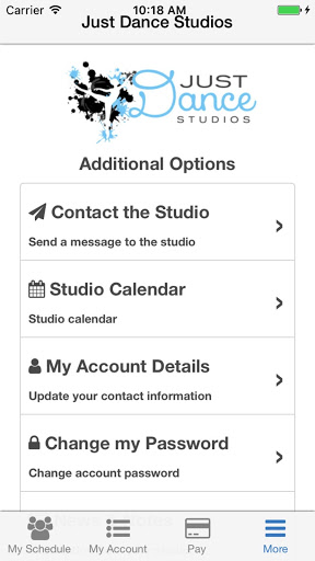 إدارة تجربة استوديو الرقص بالكامل مع تطبيق New Just Dance Studios.استمتع بتسجيل الوصول المحمول وعلى مدفوعات الذهاب الدراسية.البقاء حتى الآن مع جميع أحدث المعلومات من الاستوديو.أبدا تفويت للفوز.