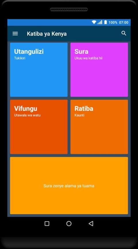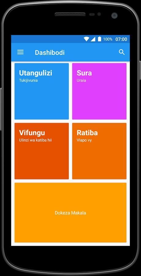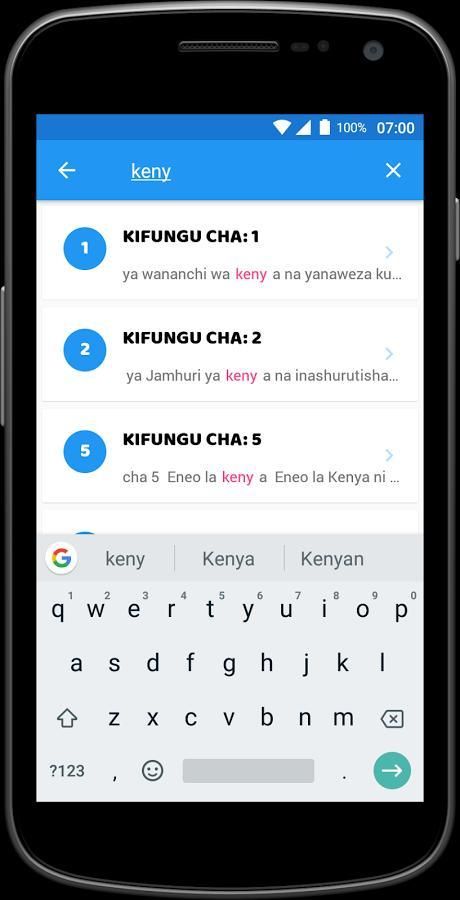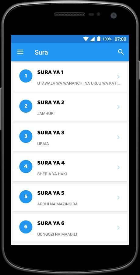 الكتيبة يا كينيا التطبيقات iliyo kwenye mtandao وا الروبوت ني toleo لا السواحيلية لا الكتيبة يا كينيا، inatoa maelezo yaliyo rahisi kusoma، yanayomwezesha المتري kutambaa كاتيكا السورة، vifungu، نا sehemu zote زا الكتيبة، كوا njia rahisi. هيا yote ياقو كوا مارا يا كوانزا كاتيكا الروبوت، كوا اللغات يا ملوك الطوائف يا كينيا: السواحيلية.