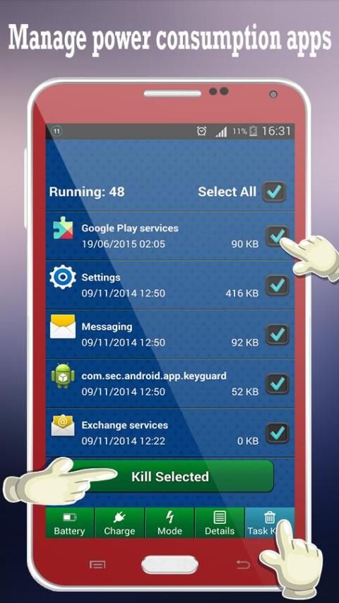 ★ Off the work of application that you don't use it to saver battery power and battery charge faster.