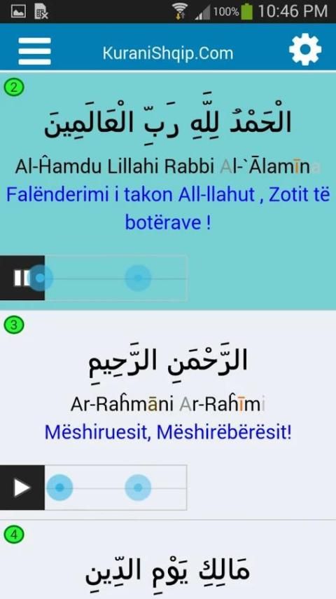 Vetëm klikoni një sure dhe nën ajetin e parë klikoni buttonin Play dhe do të fillojë këndimi i të gjitha ajeteve njera pas tjetrës.