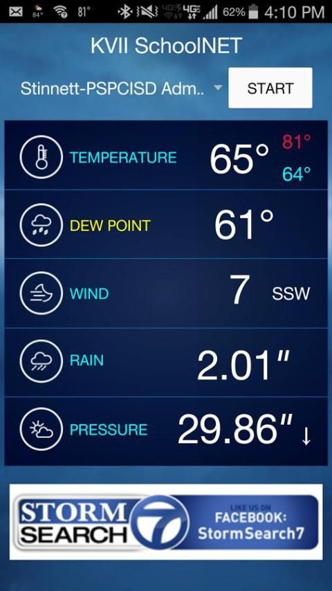 More weather station data is now displayed including record high and lows. At any time when viewing data from a site you can tap the KVII SchoolNET caption to return the display to current conditions.
