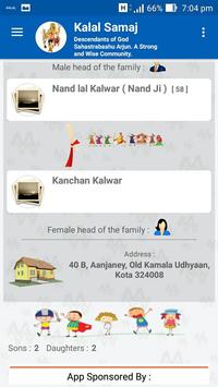 App has listing of families of Kalal Samaj with their details and other related features.