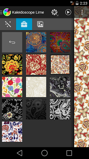 The "Kaleidoscope Lime" – a tool for creating paintings in the art kaleidoscope. You can do it even if you do not know how to draw. The picture is created from fragments of the base image that reflected from the virtual mirror, according to the selected optical system, will make a unique image. Just as in the usual kaleidoscope of you probably will not be able to get the same picture a second time, so do not forget to save the results on the SD-card. Perhaps some pictures you want to show on the desktop. Animation mode allows you to unwind and relax while watching a continuously changing picture. In "Kaleidoscope Lime" has a variety of options for creating random base image (styles, palettes, etc.), as well as the possibility of obtaining a basic camera image from the gallery or from additional institutional collections: