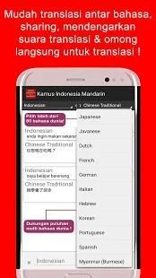 Aplikasi kamus Indonesia Mandarin merupakan aplikasi modern satu-satunya bagi anda yang apakah sedang belajar bahasa Mandarin (Tiongkok) ataupun bagi anda yang sudah mahir dan memerlukan kamus elektronik dimana juga mendukung pembacaaan (berbicara) jika anda menekan tombol dengan lambang speaker.