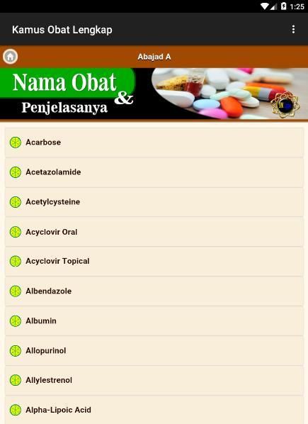 The Complete Drug Dictionary application on various types of drugs and drug ingredients and an explanation as Paracetamol, antalgin, Mefenamic Acid, Amoxicillin, Cefadroxyl, Acyclovir, and others. The drugs are identical between the name on the packaging with the active substance.