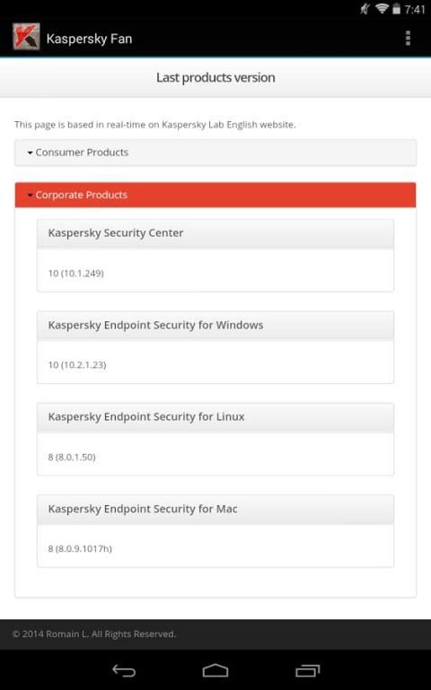 هذا التطبيق يتيح لك إحصاءات الوقت الحقيقي على كاسبيرسكي لاب المنتجات / التحديثات، ويوفر لك أدوات وتسالي مجانا، الخ