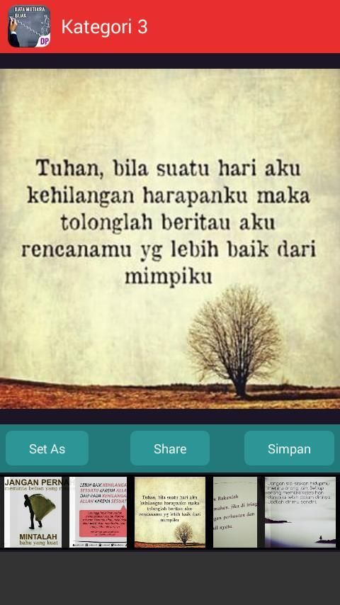 الحكمة digunak الكلمات اللؤلؤ التي كتبها الدافع لتحفيز لهم أن يصبحوا أكثر عاطفة أن يعيش هذه الحياة. مع أحدث الكلمات اللؤلؤ، يمكنك استخدام يصبح موانئ دبي BBM بحيث تصبح أكثر حماسة ويكون الدافع. كلمة لحياة حكيمة كما إلهام الخاصة بك في العيش تقلبات الحياة.