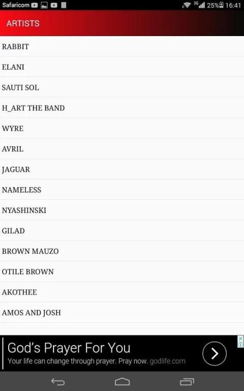 AKOTHEE، AMOS وجوش، AVRIL، BROWN MAUZO، ELANI جلعاد، H_ART THE BAND، JAGUAR، مجهول، NYASHINSKI، أوتيل براون، الأرنب، SAUTI SOL، WYRE، أليس كاماند، باهاتي، DADDY OWEN، ايمى كوسغي، ESTHER WAHOME، يونيس نجيري، إيفلين وانجيرو، غلوريا موليرو، KAMBUA، لويز كيم، مرسي ماسيكا، شيرو WA GP، SIZE 8، سليمان MUKUBWA، ويلي بول.