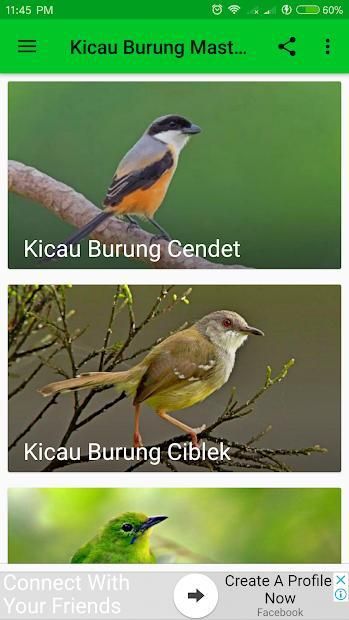 1. Kicau Burung Masteran Lengkap berisi 50+ audio kicau burung