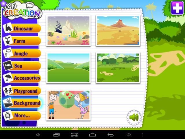- الاختيار من بين عدة بيئات مثل الديناصورات، ساحة لعب، البحر، مزرعة، غابة الخ