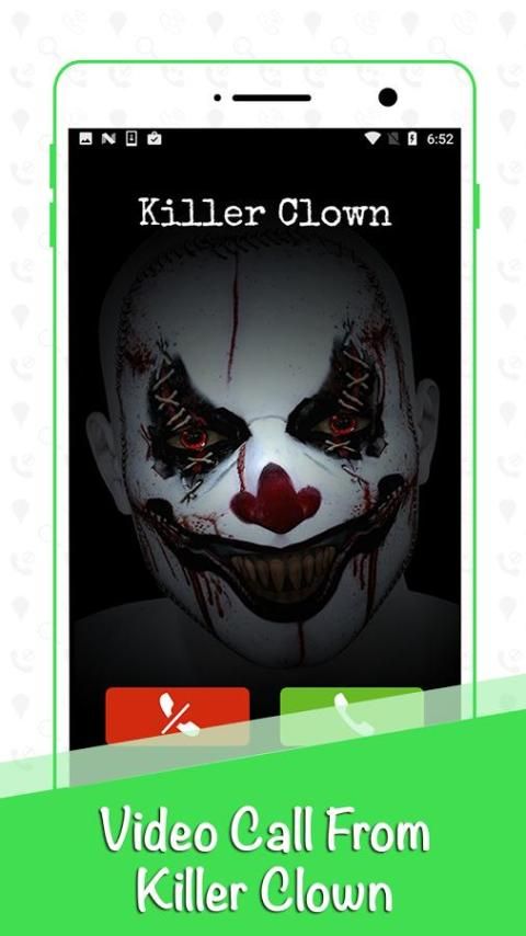 الحصول laughts مع أصدقائك وتتمتع هذه هالوين القاتل المهرج مكالمة فيديو على الانترنت كاذبة.