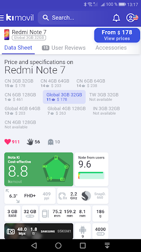 In Kimovil, we trace major Chinese and European mobile sales store one by one, checking their pages to help you find every day the best deal. The pages we provide belong to trusted shops with thousands of phones sold every month. This ensure a great purchasing experience and mitigate the risk of having problems with your phone (nothing is 100% reliable). We help you avoiding scams and give you the piece of a real shop behind every purchase.