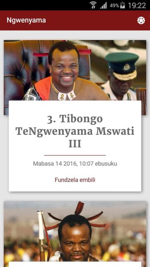 يتم إنشاء التطبيق مكتب جلالة الملك على وجه التحديد لسوازيلاند ويسمح لك الاختيار بين اللغتين الانكليزية والسيسواتية.