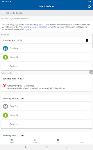 جداول القمامة وإعادة تدوير وتذكير كينغستون، أونتاريو.عرض جدول القمامة وإعادة التدوير والاشتراك في البريد الإلكتروني أو الهاتف أو التذكير على Twitter كل من داخل هذا التطبيق.