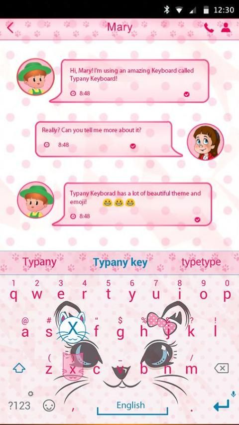 The Kitty Face keyboard theme is specially designed for Typany Keyboard users.