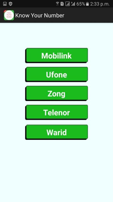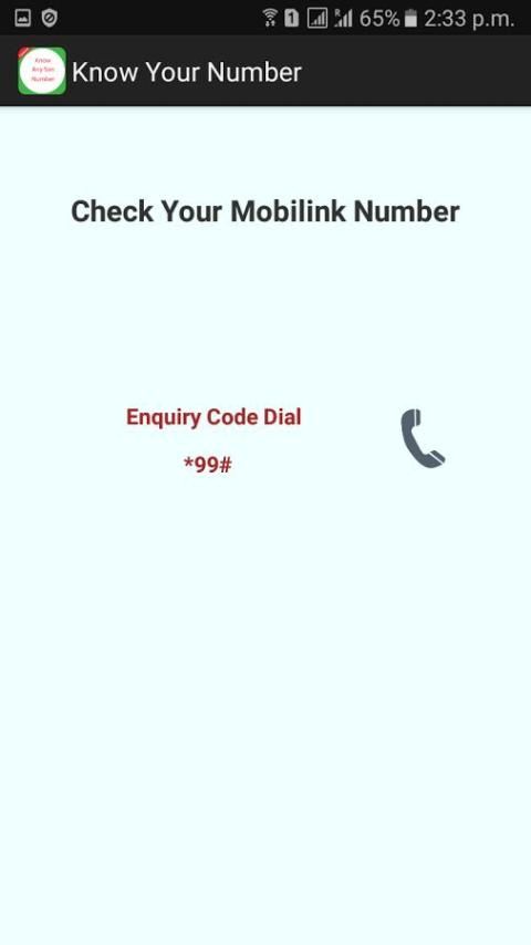 تعرف أي المحمول سيم عدد باكستان مثل عدد تسونغ، وارد، يوفون، تلينور وموبيلينك. يمكنك العثور على أي رقم في واحد التطبيق ببساطة عن طريق رمز الاتصال التي أعطيت في Application.If كنت قد نسيت رقم SIM الخاص بك ثم لا تقلق هذا التطبيق سوف اقول لكم رقم هاتفك. وبالتالي يتم هذه الطريقة حاليا، لا حاجة للاتصال بالإنترنت.