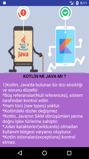 6) Kotlin is a more secure language than Java. So what does this security mean? Null data, which has been used in object-oriented programs since 1965 and caused billions of dollars in damages, was treated more securely with Kotlin and prevented from damaging the system. You have to make a special effort to get Null error in Kotlin :)