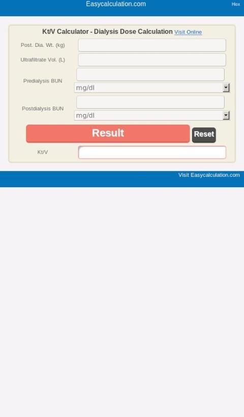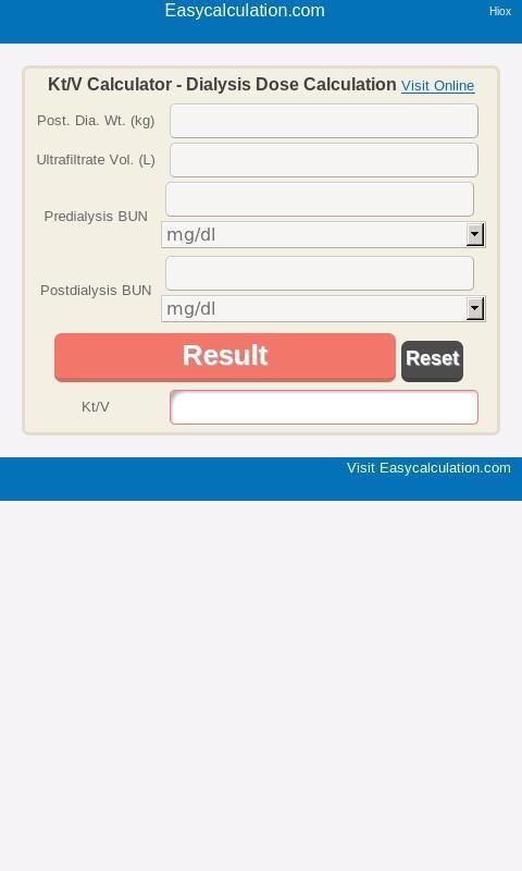 كيلوطن / V غسيل الكلى الجرعة دوجرداس حاسبة - حساب كيلوطن / V في غسيل الكلى والغسيل البريتوني