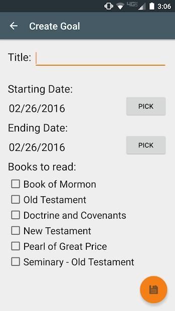 LDS Scripture Tracker is an app designed to help you to keep track of your reading in the scriptures. You can create goals with a starting date, an ending date, and the books you want to read. You can then check off the chapters you have read, and it will tell you how many you need to read per day to help you stay caught up.