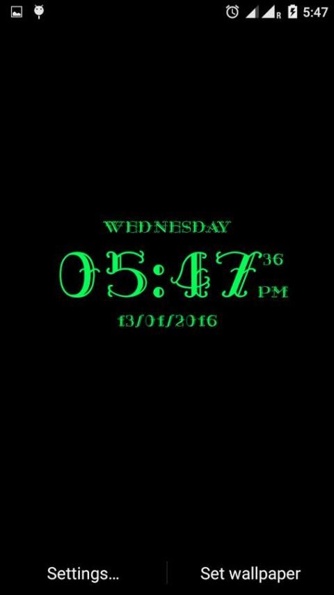 LED Digital Clock Pro Live Wallpaper also display clock with date and day of week.