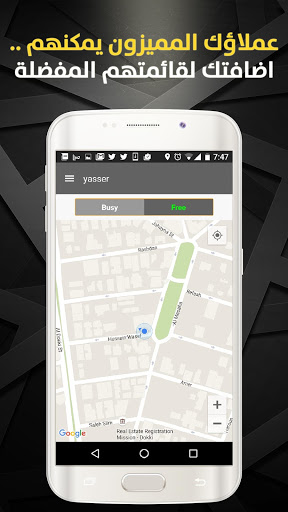 يمكنك ان تطلب من عملائك المميزين البحث عن اسمك واضافتك إلى قائمتهم المفضله في تطبيق دليل ليمو , وبذلك تكون أول من يظهر لهم عندما يحتاجون خدماتك , ويمكنهم متابعتك في طريقك اليهم , ومشاركة بياناتك مع الأقارب والاصدقاء عندما يحتاجون خدماتك