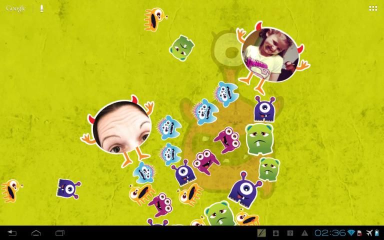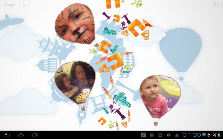 يتم تحميلها على إطارات الصور ديناميكية تتحرك على الشاشة في الوقت الحقيقي من معرض الصور الخاص بك وتفاعلية، أيضا: يمكنك سحب وإسقاط لهم، تناوب عليها، وجعلها تصطدم بعضها البعض، ورمى بها على الشاشة.