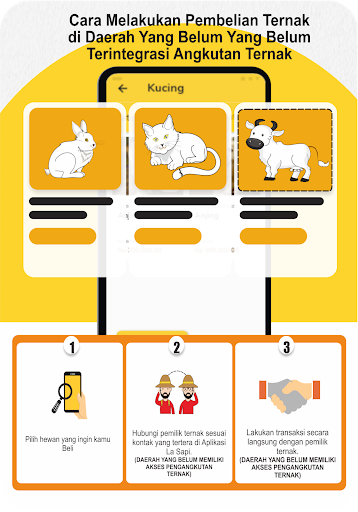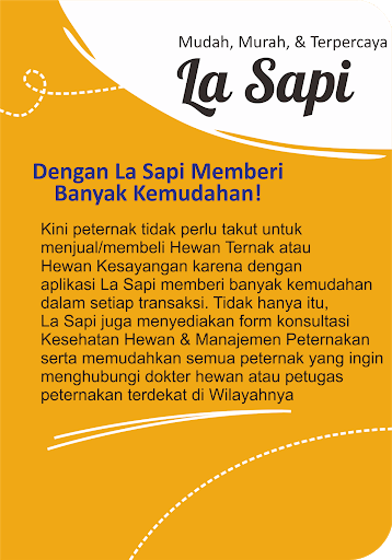 الآن لا يحتاج المربون إلى تخافوا من بيع / شراء الحيوانات الماشية أو الحيوانات المفضلة لأن تطبيق La Cow يوفر الكثير من الراحة في كل معاملة. يوفر La Beef أيضا نموذج استشاري لصحة الحيوان وإدارة الماشية ويسهل الأمر على جميع المزارعين الذين يرغبون في الاتصال بأقرب ضابط بيطري أو مزارع.