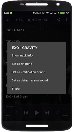 هذا التطبيق يحتوي على مجموعة من أغاني الفرقة EXO كاملة مليئة بالألبومات.