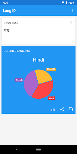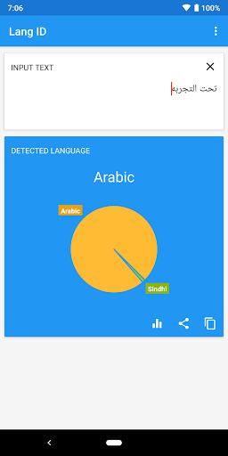 يستخدم هذا التطبيق نموذجا احتملا لتحديد اللغة الطبيعية التي يتم فيها كتابة النص المحدد.