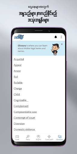 Lann Pya (herein App) is an informational resource app that seeks to promote public understanding of the law and basic rights in Myanmar. The App does not provide legal advice and it is not a substitute for a qualified lawyer.