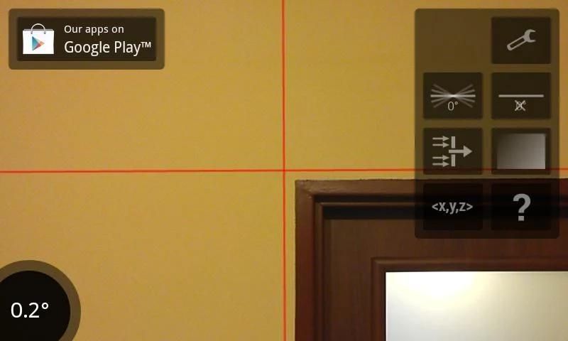 المستوى الليزر يتيح لك استخدام كاميرا الهاتف الروبوت تعمل بالطاقة وعلى نحو مماثل لأداة مستوى الليزر. انها مثل زيادة مستوى فقاعة الواقع. لكنه يظهر أيضا في زاوية درجة، وبالتالي لا يمكن إلا أن ترى أن شيئا ما لا تعادل، ترى قبل كم.